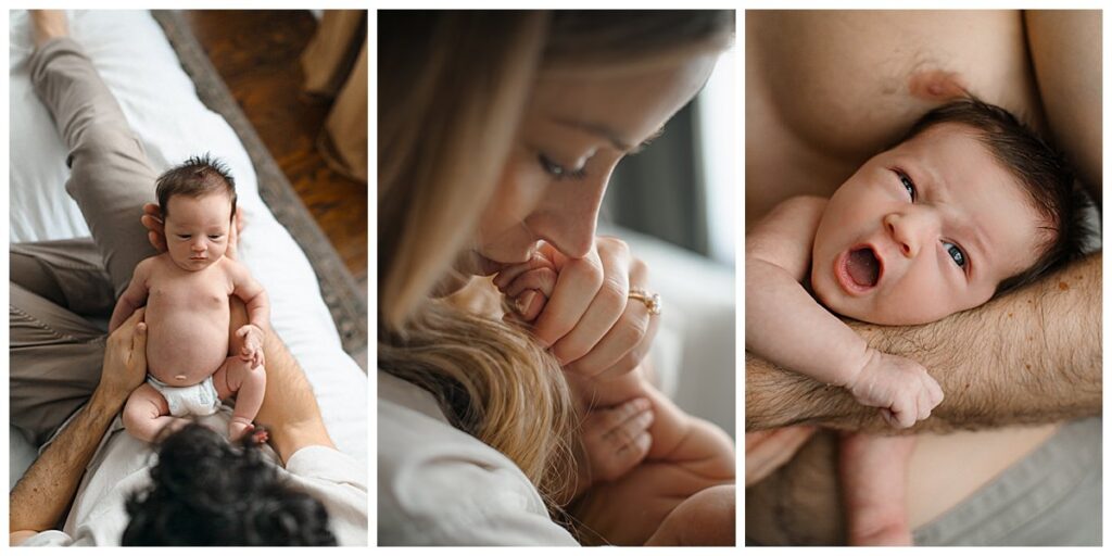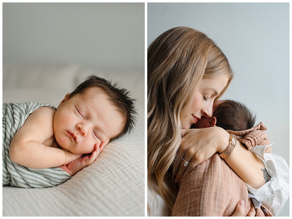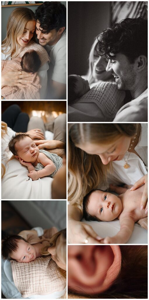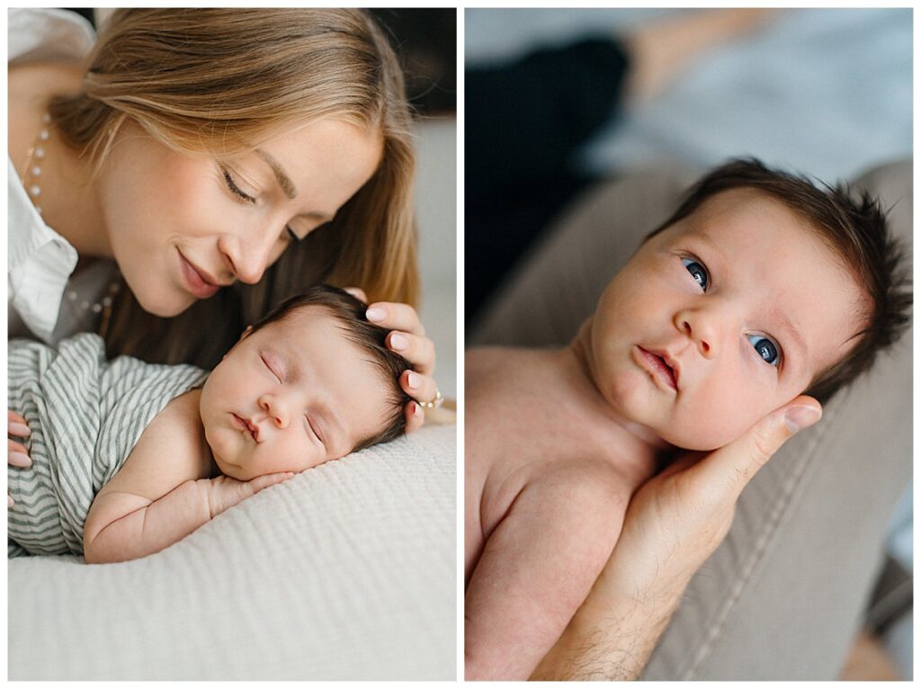 Throughout the session, Steph helps to create everyday moments that any mother would want captured. She artfully captures a feeding session, an outfit change or walking down the stairs. This lifestyle like vibe adds to your modern newborn photos in your home.
