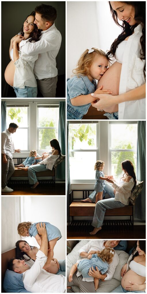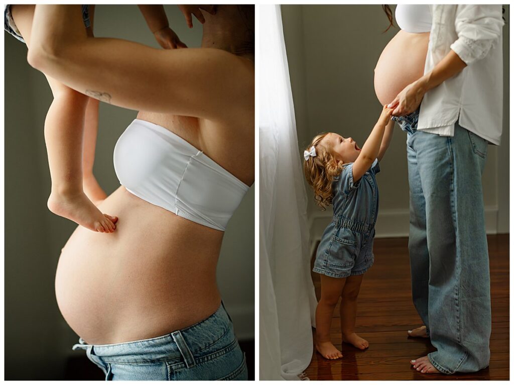 Your maternity session is for you and your growing family. Moments for you to look back on 20 years from now and think, dayyyyuuuummmm. Look at us!! Sessions are split into parts: lifestyle family and belly portraits. These parts can be help indoors or outdoors, maybe a combination of the two. Either way, capturing this window before your family grows again, is often an overlooked time. Parents think “my toddler will not sit still for maternity photos..” Guess what? They aren’t supposed to! Working with young children is my specialty. You do not want to miss the opportunity for maternity photos with toddlers.